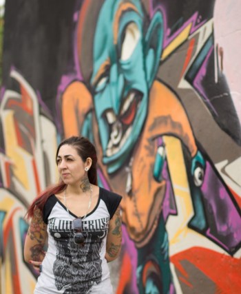 Pero más allá de las fuentes de inspiración y las herramientas técnicas que fue incorporando, la carrera artística de Érica está marcada por una actividad paralela al tatuaje que además moviliza su vida cotidiana: el graffiti. “Es lo que más me despeja. Me identifiqué mucho con esa expresión y su ambiente, ya que genera un encuentro permanente con otras personas”, asegura.
