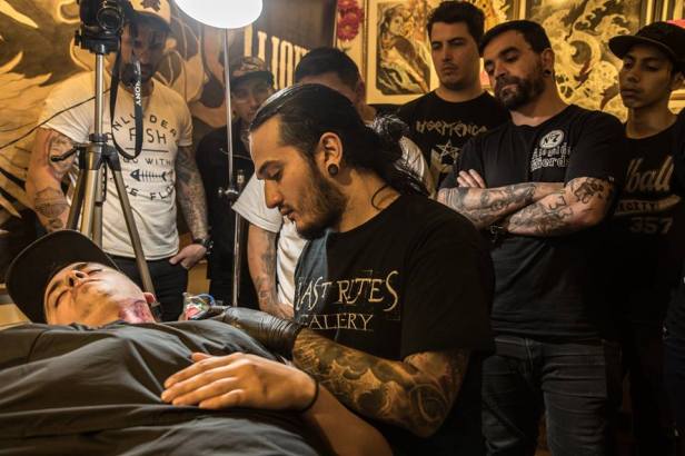 Homeless Tattoo Club organizó dos jornadas de capacitación a cargo de David Jorquera, reconocido por creaciones que representan mundos y escenas de profunda oscuridad. Participaron 40 tatuadores con distintos perfiles y trayectorias.