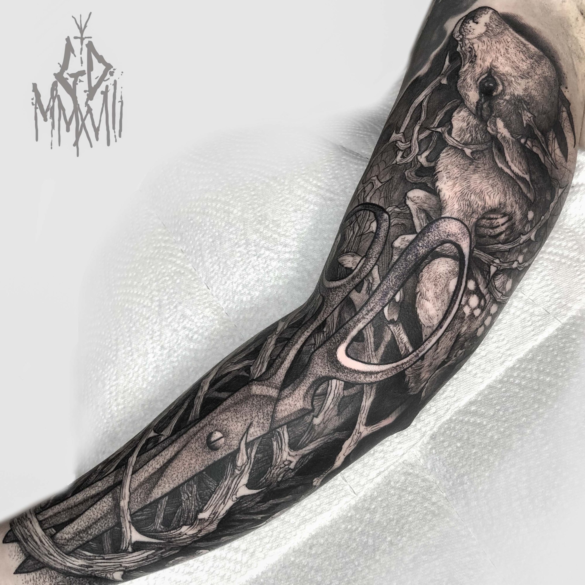 “No es necesario ser un lobo solitario que se encierra en su sótano y pinta todo el día. En primer lugar, hay que ser humilde y no olvidar las raíces del tatuaje. Un ejemplo para mí es Filip Leu, cuyos valores como persona y como tatuador siguen vigentes. Se puede aprender mucho de su conocimiento y de sus trabajos”.