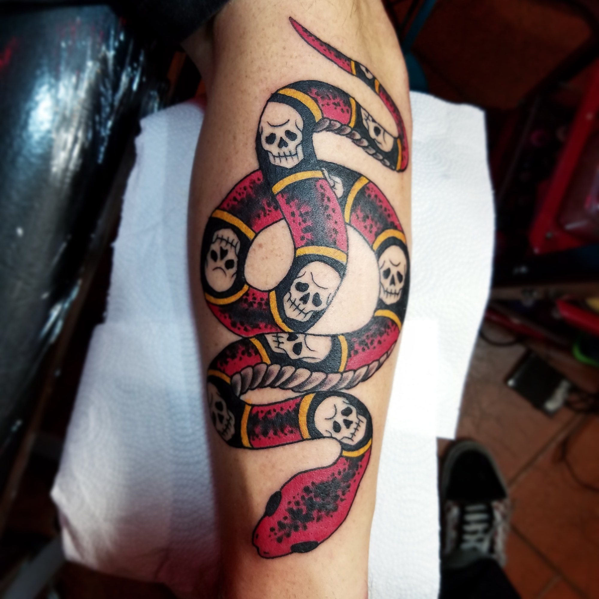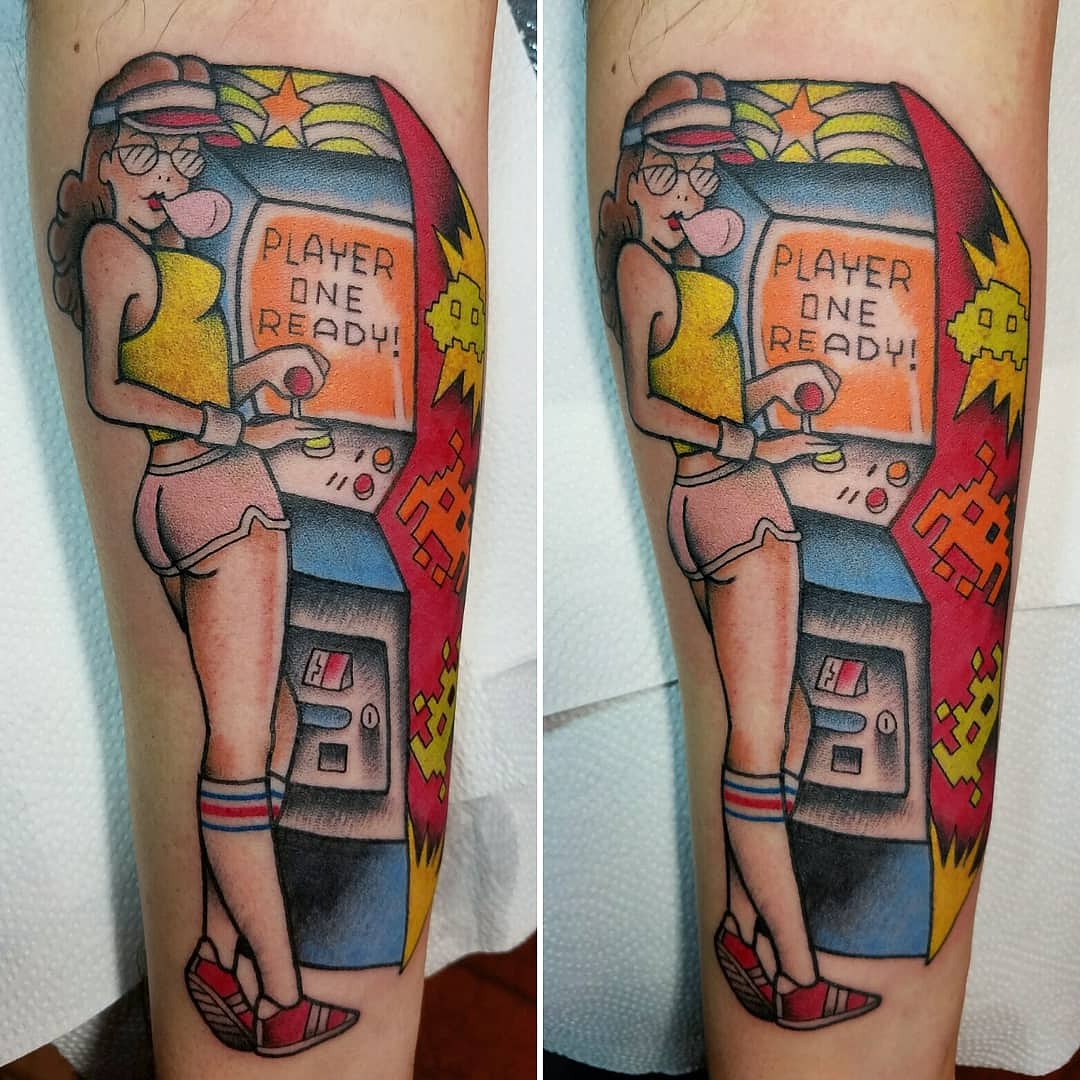 Si bien el estilo propio que desarrolló con el tiempo toma al Tradicional Americano como piedra fundamental, le sumó los consumos culturales que alimentaban su universo creativo. “Lo definiría como una fusión de ilustración con historieta, porque vengo de ese palo. Pero sin pasarme para el lado del New School, que artísticamente es muy lindo, pero a veces no perdura como otros”.