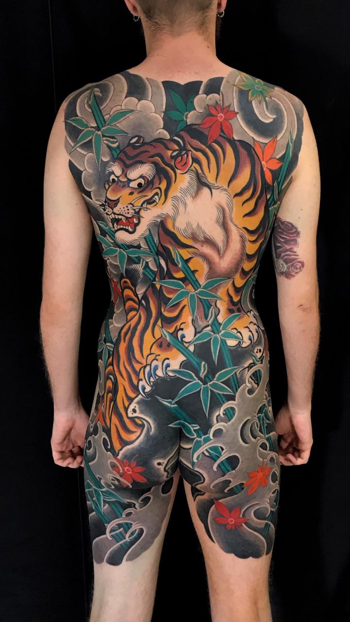 Cuando todavía exploraba el estilo Tradicional, intentaba pulirlo para que el resultado final no fuera tan duro o rígido. Tatuaba seguido en San Pablo, Brasil, donde vivió un punto de quiebre definitivo: su primer encuentro cercano con un cuerpo cubierto enteramente por un único tatuaje en estilo Japonés.