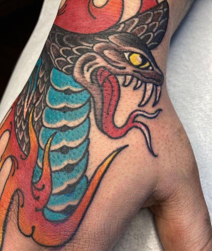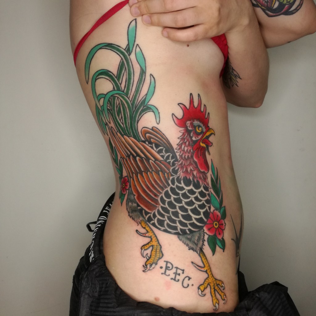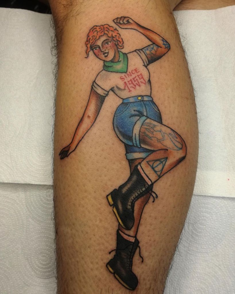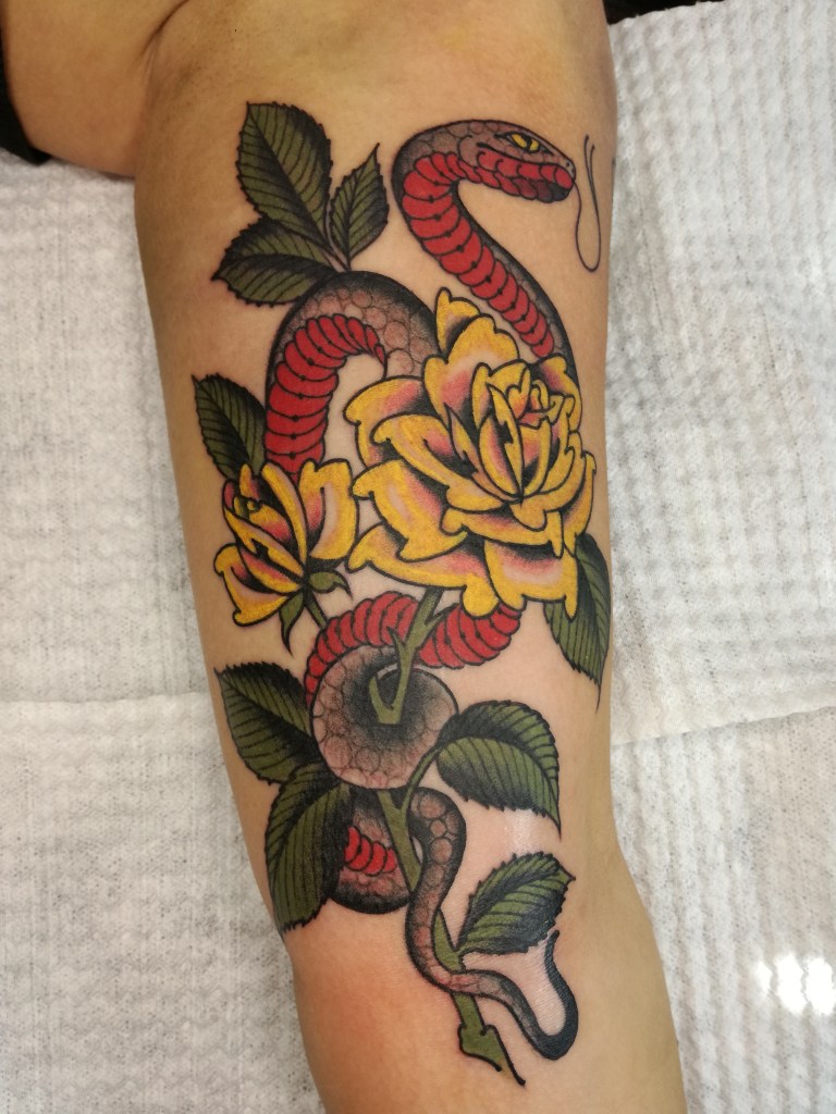 Ya no se dedica al Tradicional puro y duro, propio de la vieja escuela. “Estoy estudiando Japonés y puedo fusionar ambas cosas, encontrando un punto medio. Tradicional en cuanto a la técnica, la línea, la saturación de color, el negro… pero con algo de la fluidez del Japonés, que tiene líneas más suaves”.